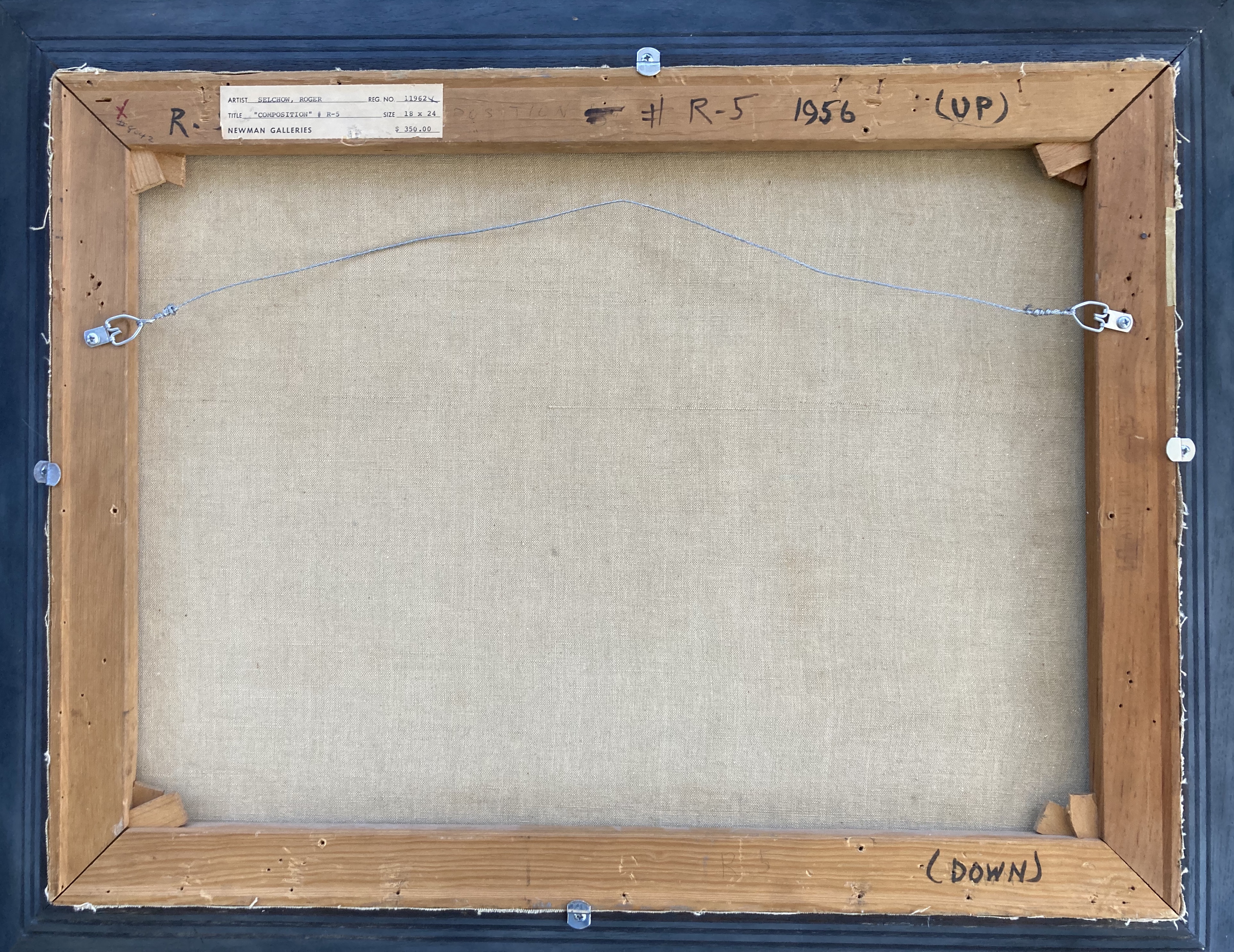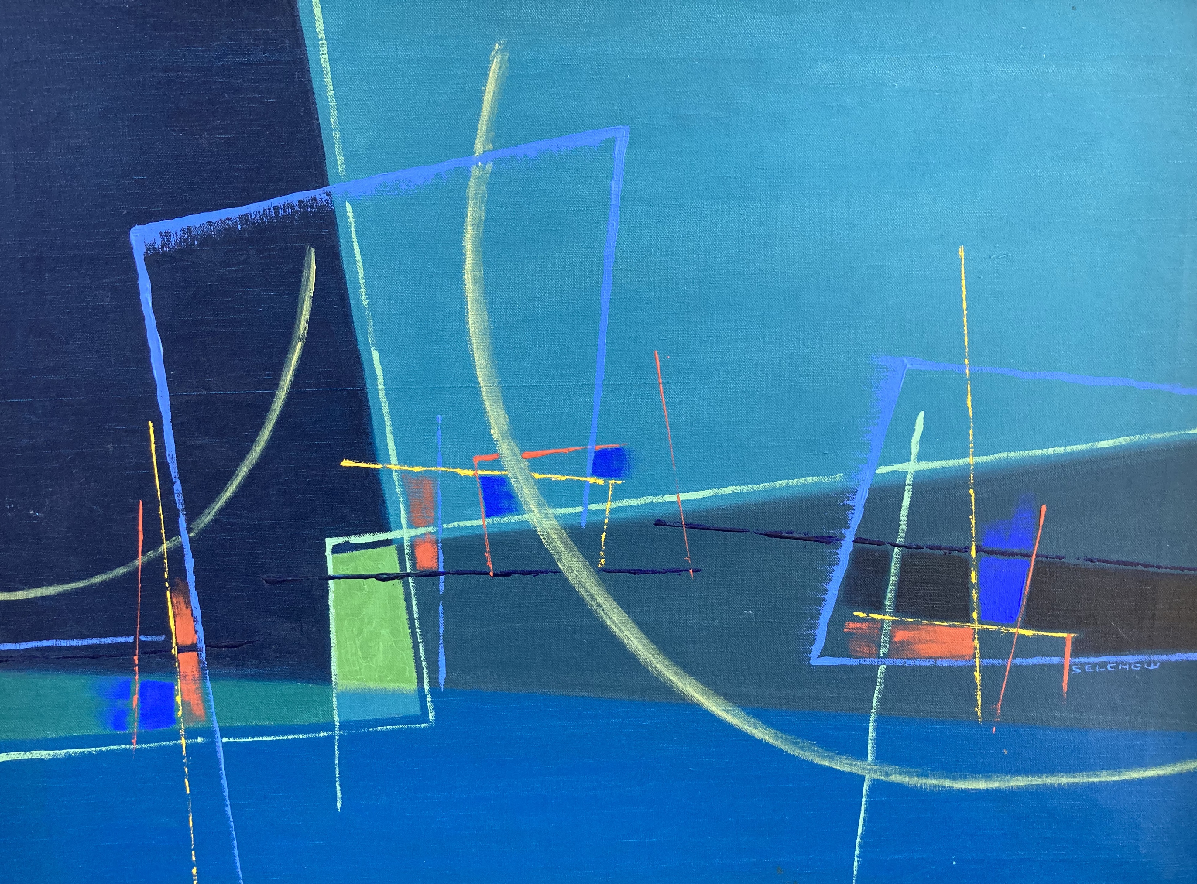 Roger Hoffman Selchow (1911-1994) was born in Greenwich, Connecticut, and is best known for his paintings of geometric abstractions. He studied at Columbia University. After World War II he absorbed the influences of European Modernism, especially the Bauhaus, Constructivism and Cubism, studying in Paris with André Lhote and Fernand Lëger, in Italy at the Istituto Statale d’Arte in Florence, and in Belgium. In Europe, he associated with vanguard artists, writers and poets.
