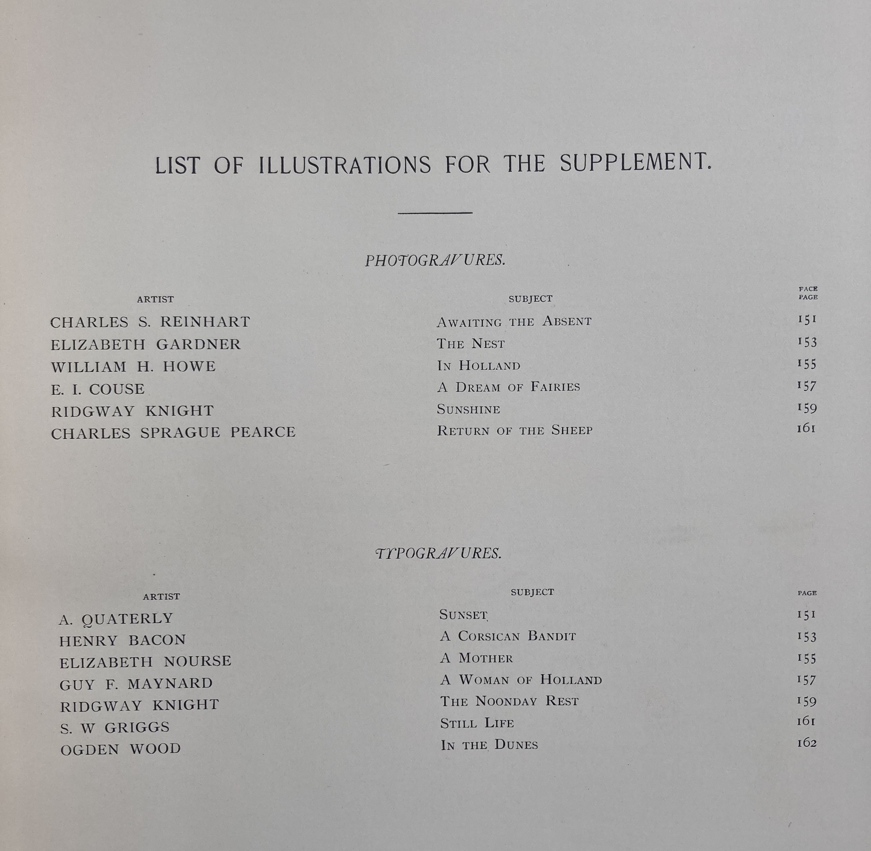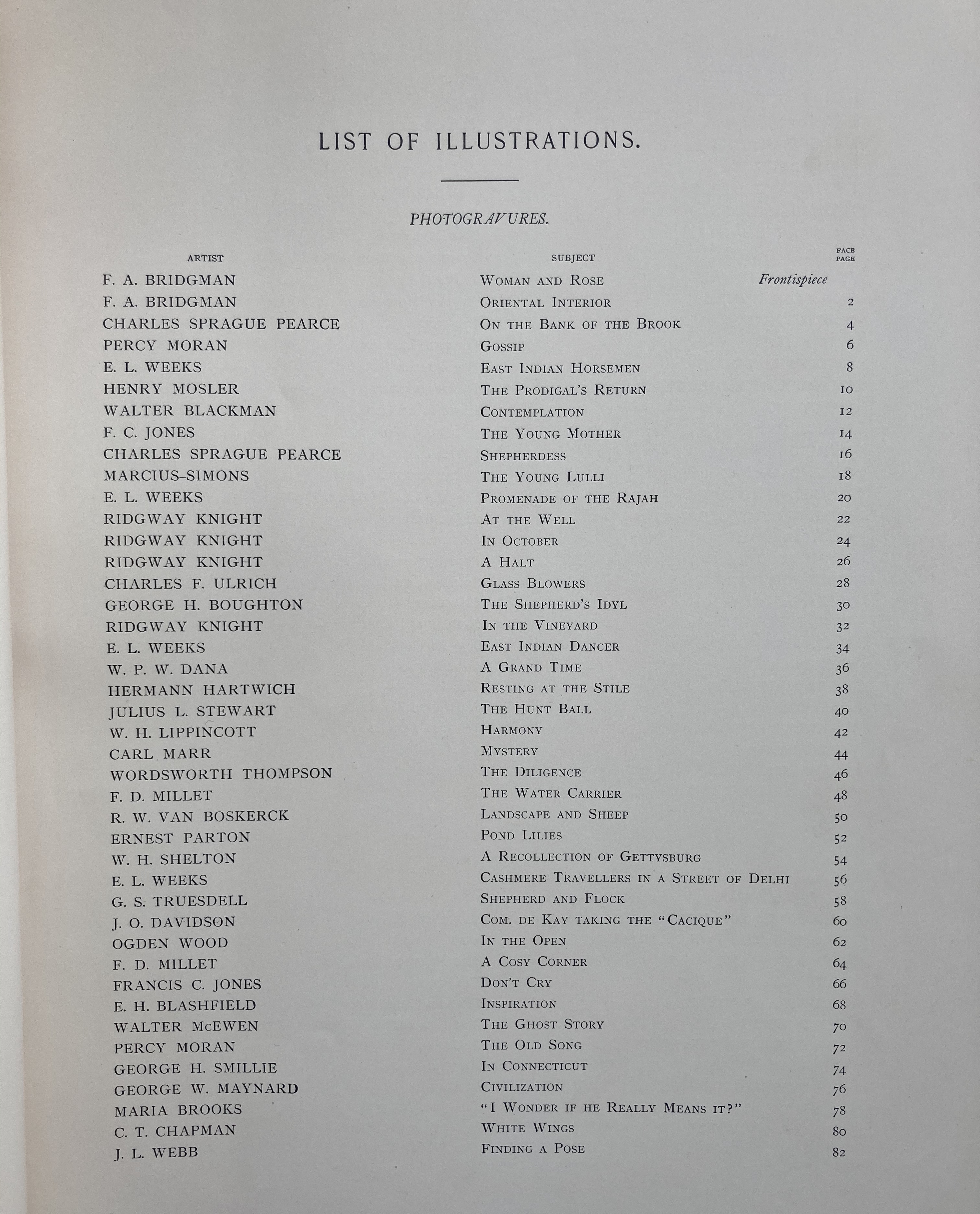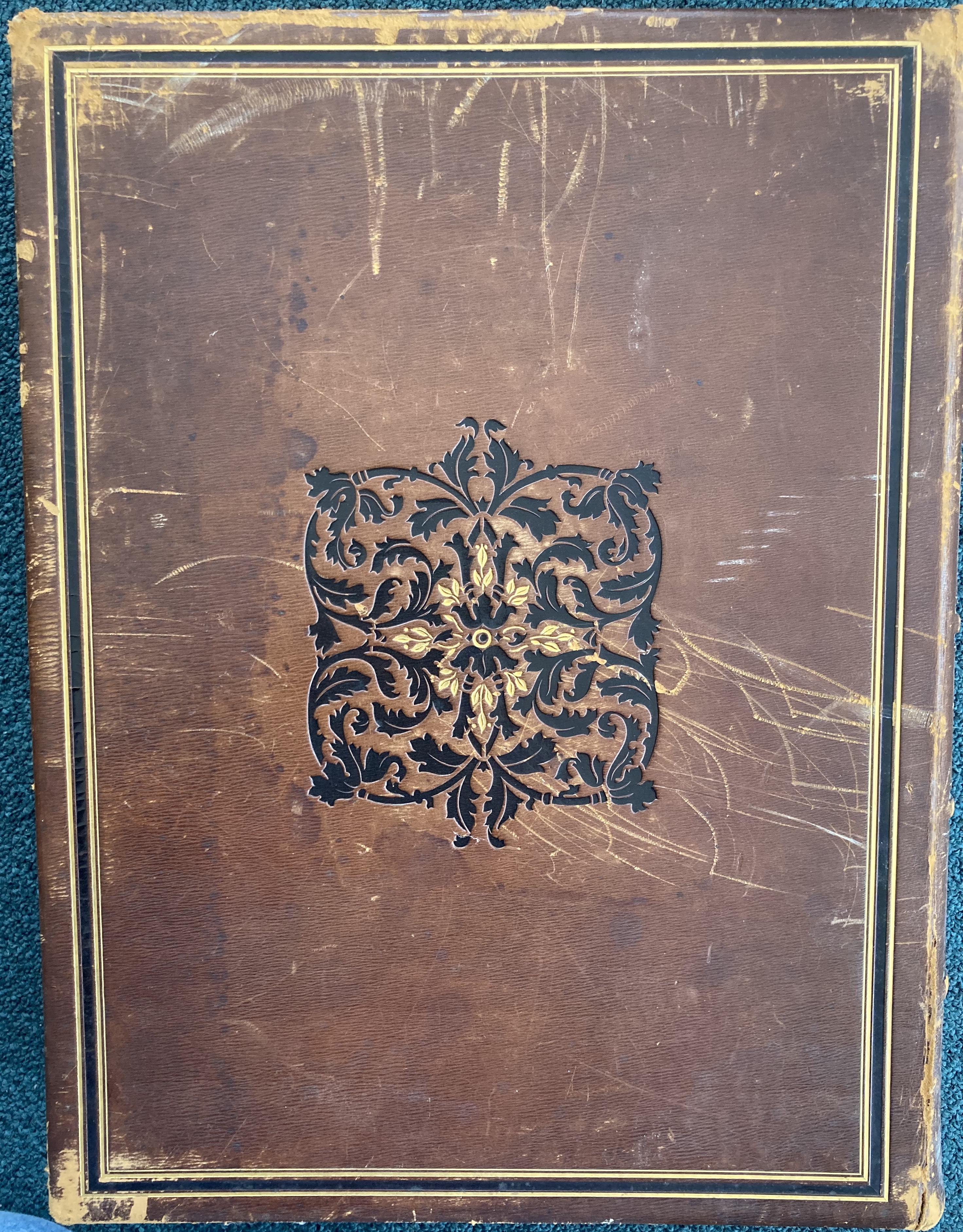 D. Appleton & Company, New York and London, 1890. Text by George William Sheldon. Hardbound. Full elaborate gilt tooled and embossed leather with 5 raised bands and extensive embossing and gilt tooling in the compartments; a real beauty. Top edges are gilt. 162 pp. 175 large plates. 17″ tall, 13″ across and about 10 lbs. A slightly better than average copy of this large, important volume. Entire volume is tight, raised bands and embossing on the spine is in average condition, being somewhat scuffed in places. A treasure trove of plates illustrating the work of American Artists of this period. Scarce, and a copy that will present well. On inside cover is a library plate for Cyrus Alger Hawes (born 1861) from a noted Boston family.